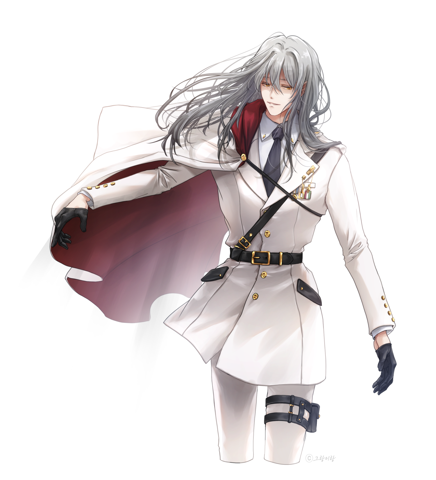 잘 차려입은 제복과, 망토. 그리고 반장갑. 정석적인 제국의 군인이라고 해도 부정할 수 없습니다. 아니, 실제로도 그렇지 않나요?