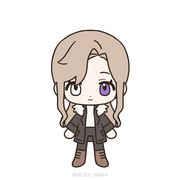 이제는 자라면서 금발에 가까운 밀색이 아닌, 완전학 밀색을 가지게 되었습니다. 히어로 활동중에 다친 왼쪽의 눈은 더이상 세상을 볼 수 없음에도 세상을 바라보고 있습니다. 마치, 기억할려는 듯이요.