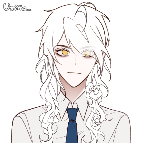 정리되지 않은 백발 / 앞머리에 살짝 가려진 왼쪽 눈 / 양 쪽 모두 금안 / 단정하지 않은 교복, 그러나 항상 존재하는 넥타이 / 신발은 검은 단화.